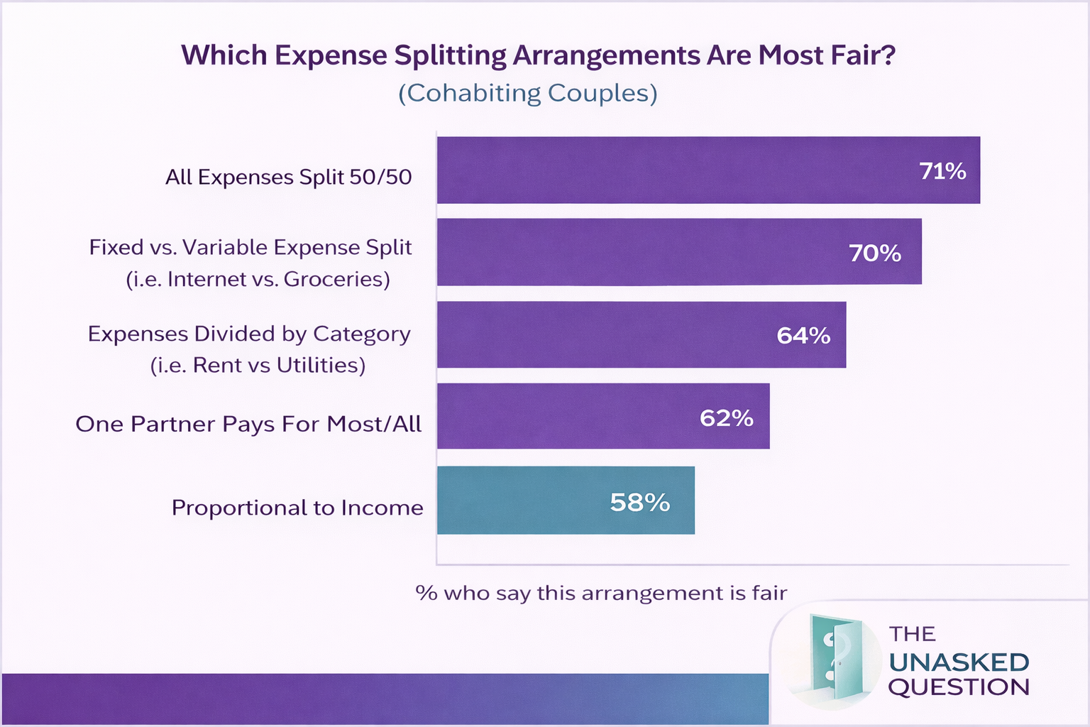 More than six in ten respondents said it felt fair when one partner paid most or all shared expenses. This challenges the idea that imbalance necessarily creates resentment.